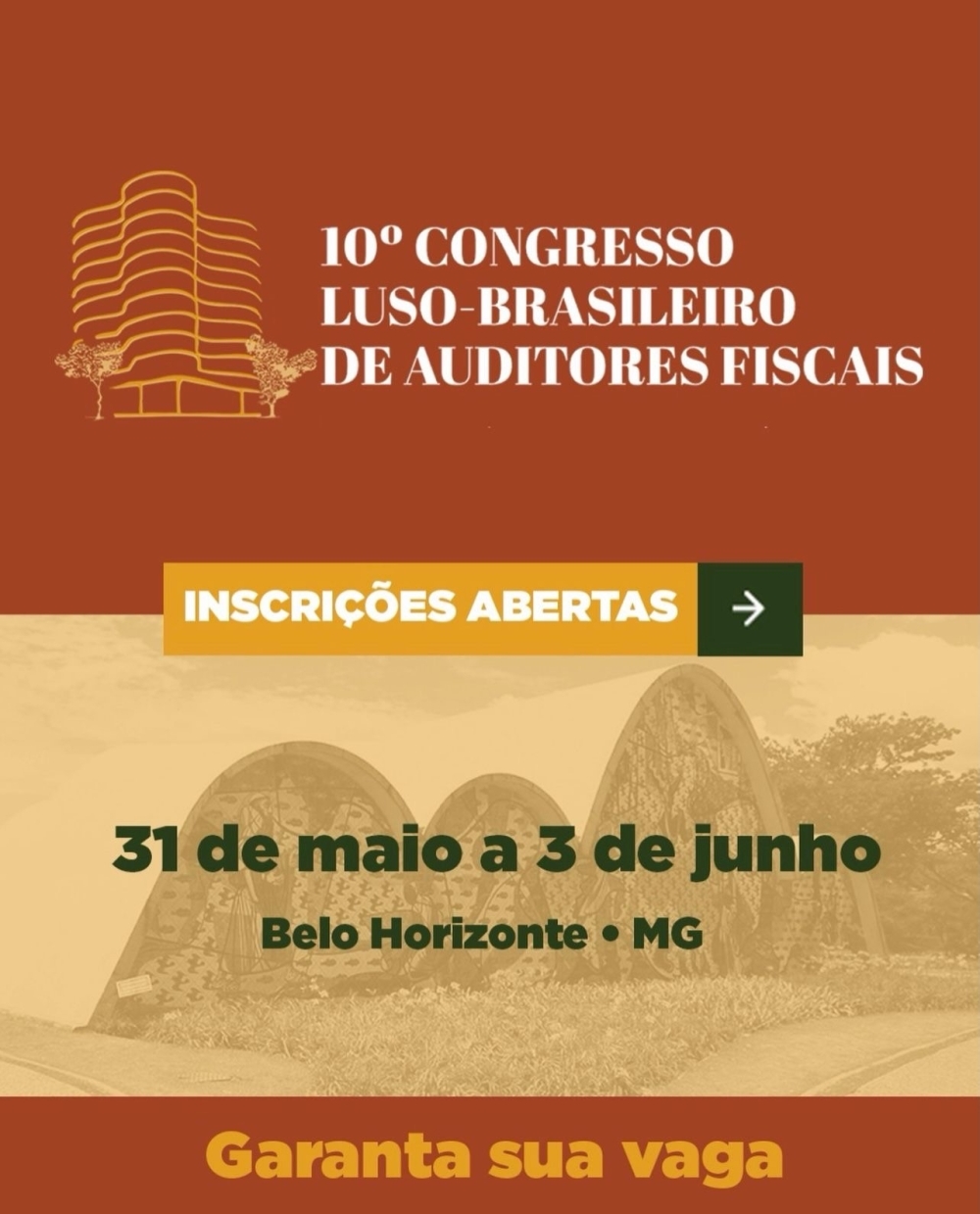 Entre os dias 31 de maio e 03 de junho, será realizada a 10ª edição do Congresso Luso-Brasileiro de Auditores Fiscais, em Belo Horizonte, Minas Gerais.