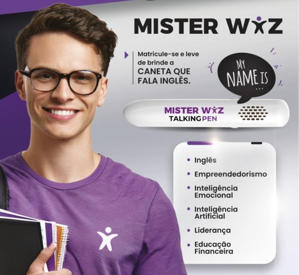 Desconto de 40% sobre os valores das matrículas, mensalidades e materiais didáticos de todos os cursos oferecidos pela ESCOLA MISTER WIZ, para associados e dependentes.