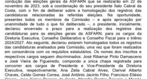 HOMOLOGAÇÃO DAS CHAPAS PARA AS ELEIÇÕES ASFARN É PUBLICADA EM JORNAL DO RN