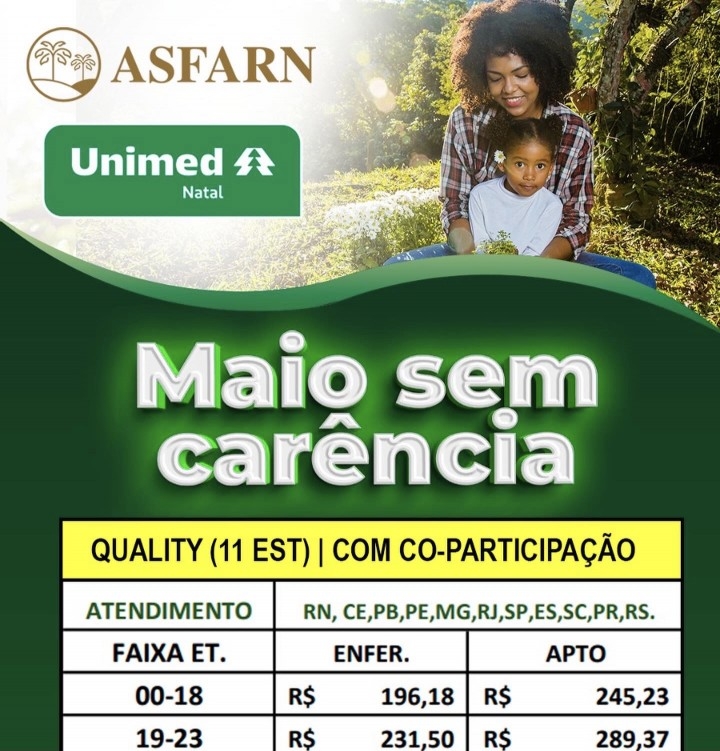 CONVÊNIO ASFARN | UNIMED NATAL OFERECE MAIO SEM CARÊNCIA!