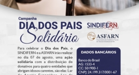 Para celebrar o Dia dos Pais – 08 de agosto, o SINDIFERN e a ASFARN irão realizar no dia 07 (sábado), uma ação solidária com a distribuição de donativos a quatro entidades que abrigam idosos carentes em Natal e Parnamirim.