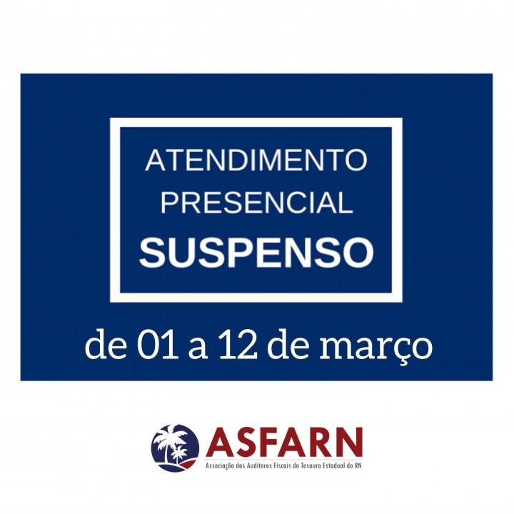 ASFARN CONTINUA COM ATENDIMENTO PRESENCIAL SUSPENSO ATÉ 02 DE ABRIL