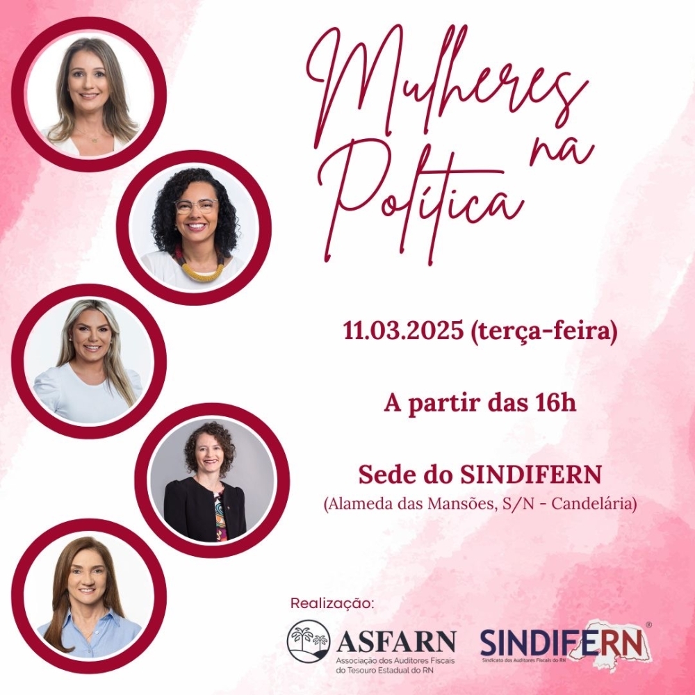 O evento em alusão ao Dia Internacional da Mulher será realizado na sede do sindicato, em Candelária, voltado para auditoras, filiadas, associadas e convidadas. Sendo necessária a confirmação de presença pelo WhatsApp (84) 98826-1355, com Denise Macêdo, até segunda (10), às 17h.