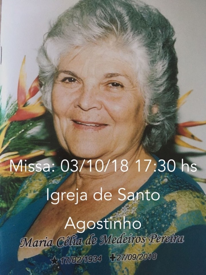 Com extremo sentimento de pesar, convidamos os colegas do Fisco RN para a missa de 7º dia da Sra. Maria Célia de Medeiros Pereira, mãe do estimado auditor fiscal Lúcio Roberto Pereira, também membro do Conselho Deliberativo da Asfarn.