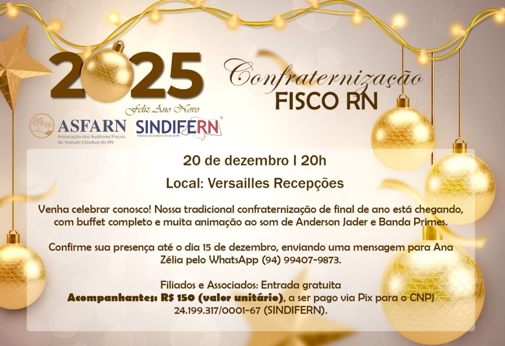 A grande confraternização de encerramento será no dia 20 de dezembro, e para nossos sindicalizados e associados a adesão será gratuita.