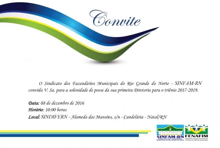 Os auditores fiscais municipais de várias cidades do Rio Grande do Norte se uniram para fundar o Sindicato dos Fazendários Municipais do Rio Grande do Norte – SINFAM–RN. A solenidade de posse da primeira diretoria será nesta próxima quinta-feira, 08, a partir das 10h, no Sindicato dos Auditores Fiscais do RN – SINDIFERN, localizado na rua Alameda das Mansões, s/n, Candelária, Natal-RN.